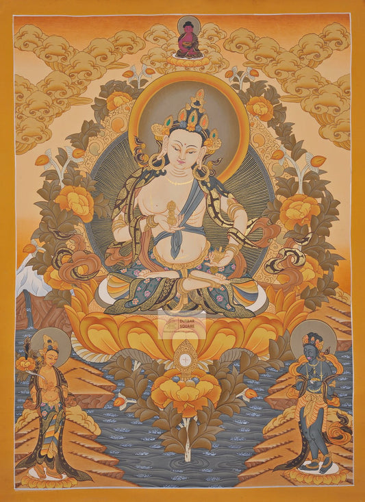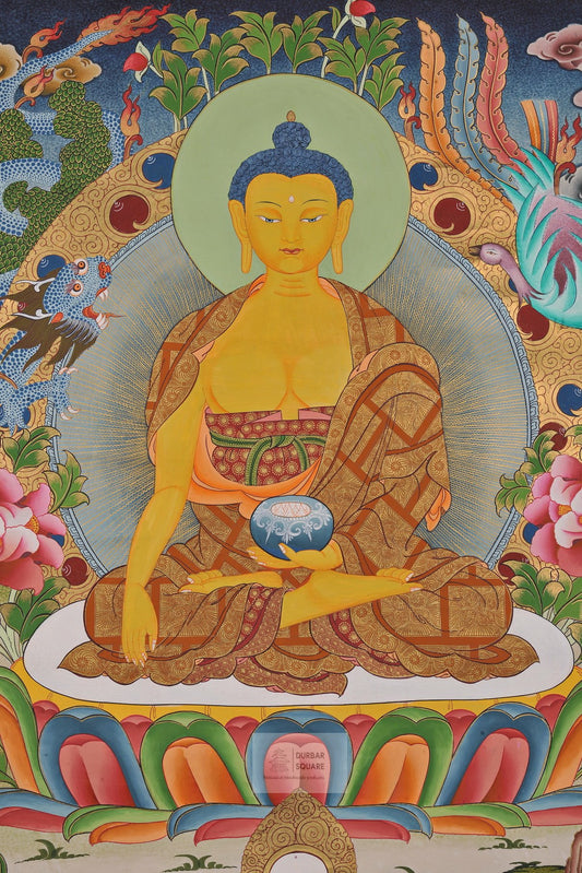 Thangkas are classical & stylized form of Nepalese & Tibetan paintings, consisting of a painted picture panel, often surrounded by a textile mantle that is supported by scroll sticks and overlain with a silk cover. Thangkas are a valuable meditation tool and offer a manifestation of the divine that is both visually and mentally stimulating.