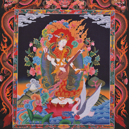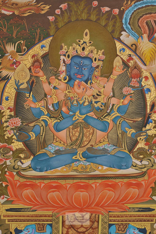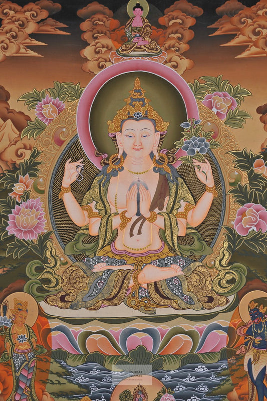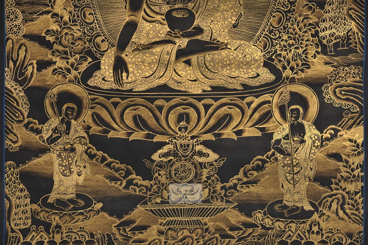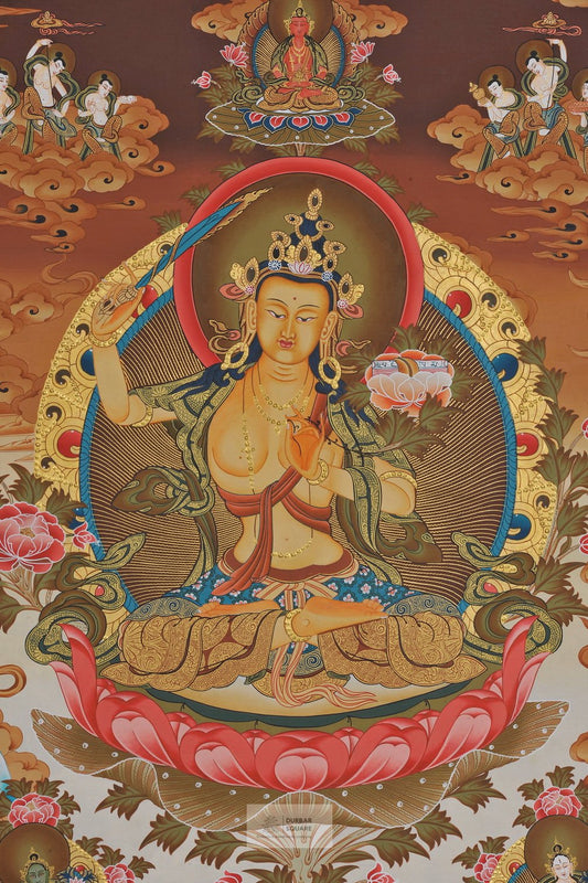 Thangkas are classical & stylized form of Nepalese & Tibetan paintings, consisting of a painted picture panel, often surrounded by a textile mantle that is supported by scroll sticks and overlain with a silk cover. Thangkas are a valuable meditation tool and offer a manifestation of the divine that is both visually and mentally stimulating.